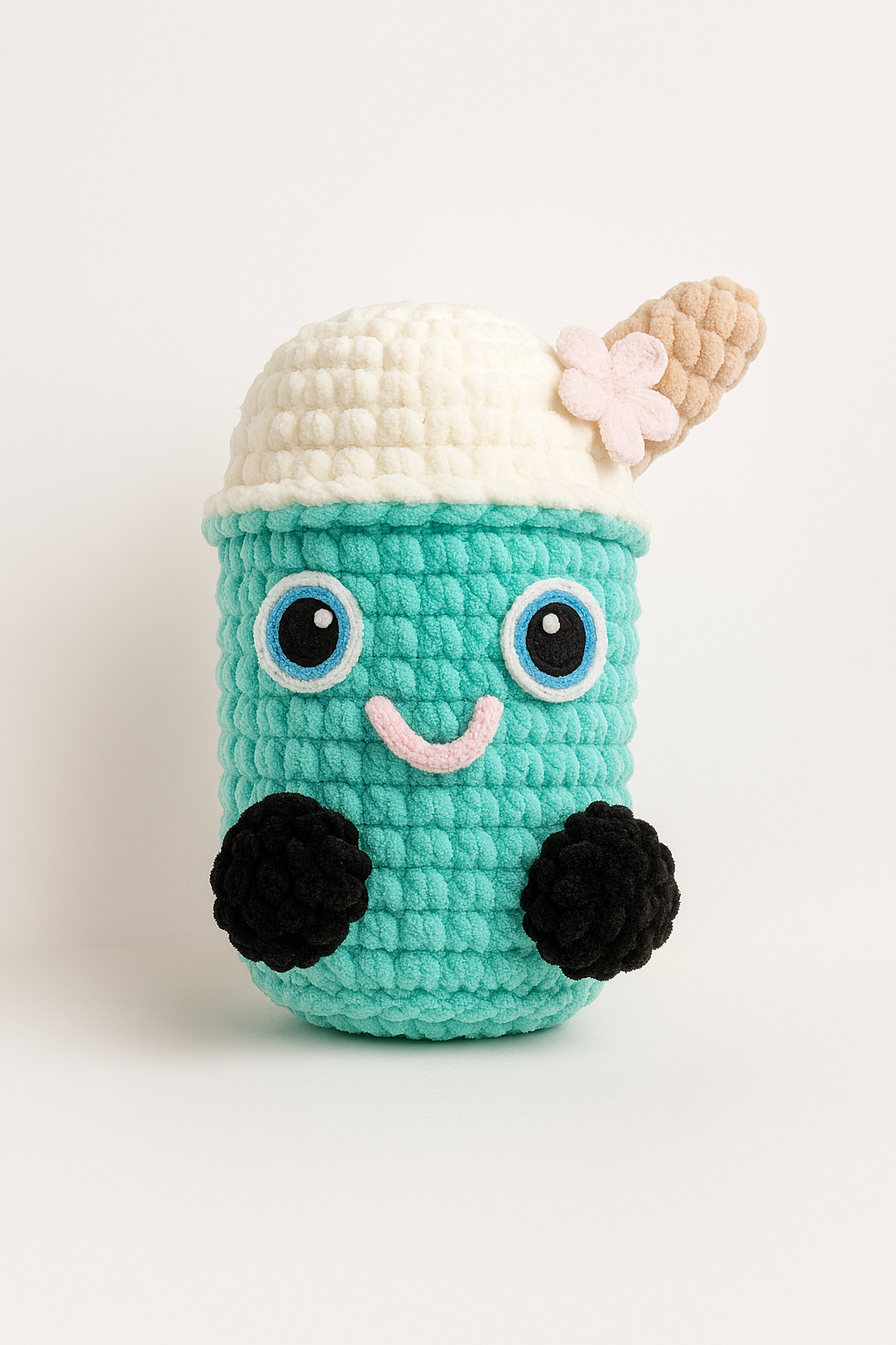 Plongez dans un univers de douceur avec Louloucha, une peluche unique inspirée des Bubble-Tea et pleine de tendresse. Confectionnée à la main au crochet avec une laine ultra douce, cette petite boisson gourmande vous fera craquer avec ses grands yeux brillants, son sourire malicieux et son adorable topping chantilly ornée d'une fleur
